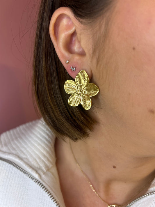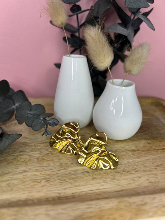 Boucles d'Oreilles Camélia en Acier Doré | Théia Bijoux