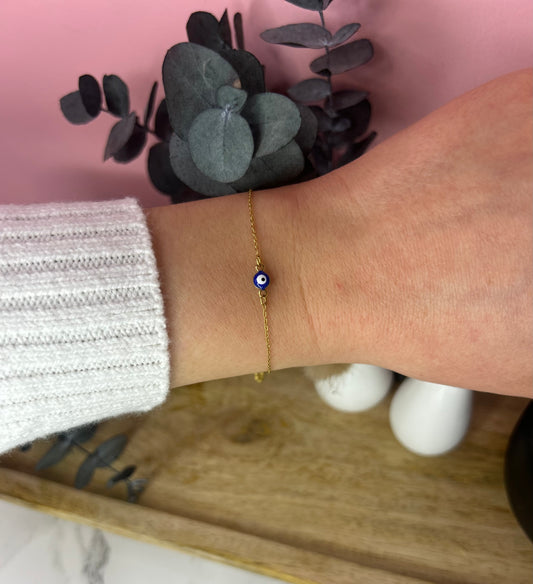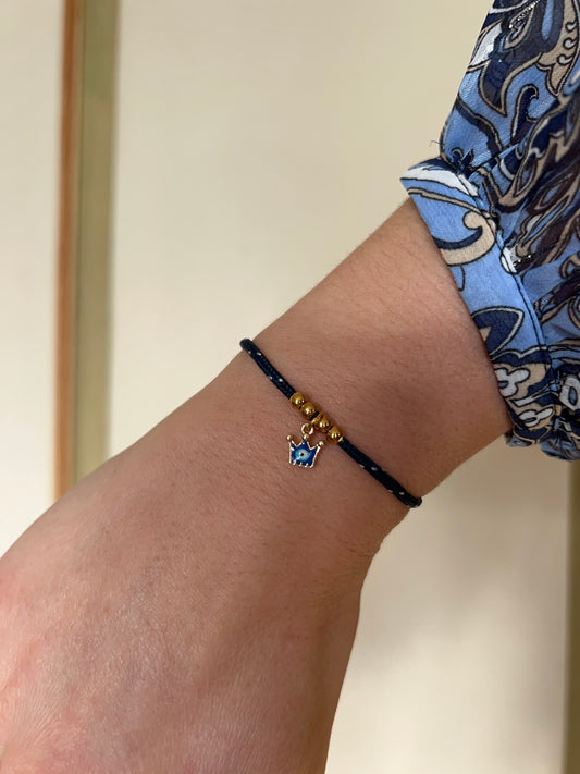 Bracelet Lila en Cordon Bleu et oeil protecteur | Theia Bijoux