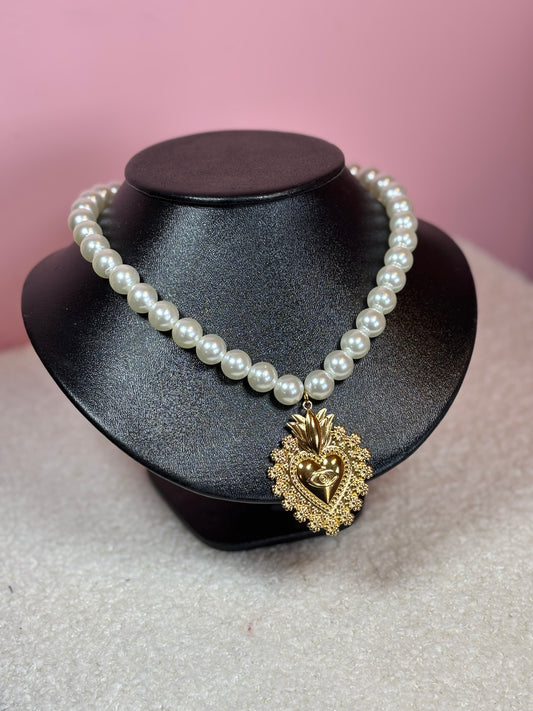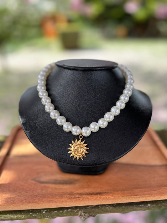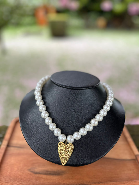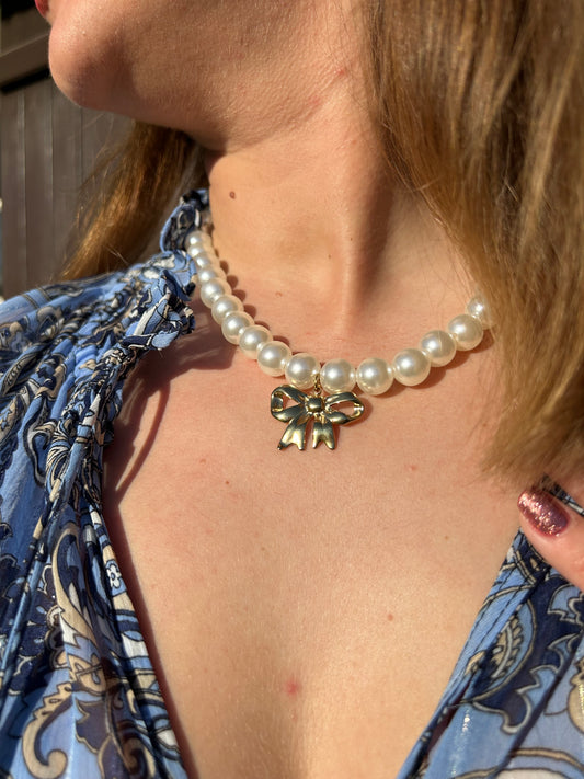 Collier Gaïa en Perles nacrées et Pendentif Nœud Doré | Théia Bijoux